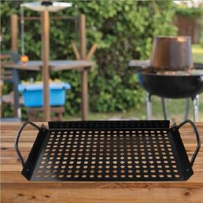 Bandeja Grill para Churrasqueira Preta em Aço InoxA Bandeja Grill para Churrasqueira é perfeita para grelhar carnes, peixes, legumes, frango, pão de alho e frutos do mar com mais praticidade e segurança. Seu formato evita que alimentos pequenos caiam entre as grades, garantindo um preparo uniforme e muito mais sabor no churrasco.