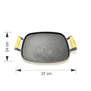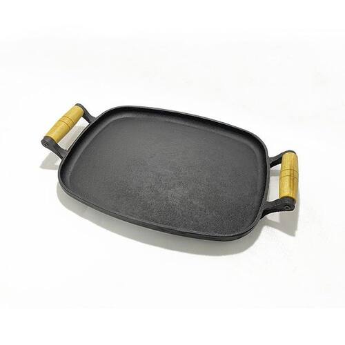 Chapa Bifeteira de Ferro Porção Petisco Duas Alças 24x37cm Chapa de ferro petisco, Casa e Jardim 24x37cm de excelente qualidade para levar a mesa. Muito utilizada por bares e restaurantes para servir porções devido a sua resistência, boa apresentação e por manter-se quente por muito tempo. A chapa possui pezinhos para não danificar a superfície da mesa ou outro local. Ótima chapa para poder preparar e servir em sua cozinha ou churrasqueiras, deliciosos bifes de carnes, frango, ou até mesmo hamburgueres e lanches. PRODUTO Chapa Bifeteira 24x37cm Ferro Fundido Alça De Madeira Marca: Casa e Jardim Comércio Medidas externas: 24 x 37 x 4 cm Peso: 2,000 Kg Fabricado em Ferro Fundido com Cabo de Madeira de fábrica. Marca: Não Informado