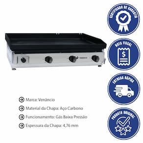 - A Chapa Bifeteira Venâncio Deguste Luxo Em Inox A Gás Baixa Pressão C80 4,76mm é ideal para quem busca desempenho superior e durabilidade na cozinha profissional.