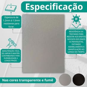 Resistência: O acrílico é resistente a impactos, tornando-o uma opção segura para áreas onde podem ocorrer choques acidentais. Leveza: Em comparação com o vidro, o acrílico é mais leve, facilitando o interno e a instalação. Flexibilidade: As chapas de acrílico podem ser moldadas e cortadas em diferentes formas e tamanhos, permitindo uma adaptação fácil a diferentes projetos e dimensões. Resistência UV: Nossas chapas de acrílico são tratadas para resistir aos efeitos nocivos dos raios ultravioleta, evitando amarelamento e manipulação ao longo do tempo. Fácil manutenção: O acrílico é relativamente fácil de limpar e manter, contribuindo para sua durabilidade a longo prazo.