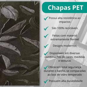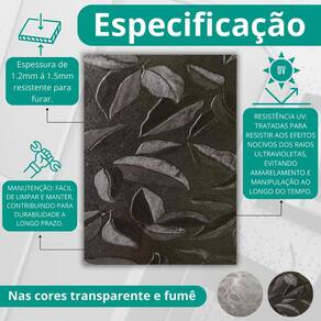 Chapa de Acrílico para Box e Gabinetes 90x98 Pantanal Fume Efatá Vidros & Acessórios, a mais de 10 anos no mercado trazendo Qualidade e inovação para o seu ambiente CARACTERÍSTICAS DO PRODUTO: Medidas: 90cm x 98cm Cores Disponíveis: Pantanal Fumê Espessura: 1.5mm Resistência: O acrílico é resistente a impactos, tornando-o uma opção segura para áreas onde podem ocorrer choques acidentais. Leveza: Em comparação com o vidro, o acrílico é mais leve, facilitando o interno e a instalação. Flexibilidade: As chapas de acrílico podem ser moldadas e cortadas em diferentes formas e tamanhos, permitindo uma adaptação fácil a diferentes projetos e dimensões. Resistência UV: Nossas chapas de acrílico são tratadas para resistir aos efeitos nocivos dos raios ultravioleta, evitando amarelamento e manipulação ao longo do tempo. Fácil manutenção: O acrílico é relativamente fácil de limpar e manter, contribuindo para sua durabilidade a longo prazo. Variedade de tamanhos: Disponível em diferentes tamanhos, permitindo a escolha da chapa mais adequada para a aplicação específica. É só nos mandar uma mensagem do tamanho e acrílico desejável que montamos o anúncio conforme o pedido do cliente. A aplicação dessas chapas contribui para um ambiente elegante, moderno e funcional. OBS: O Corte pode ter variação de +- 1mm. Pode ser cortado, perfurado, colado, moldado, entre outros. Boa resistência ao impacto, atóxico: segurança total quando em contato com alimentos. Vocês cortam sob medida R: Sim, cortamos sob medida. É só nos mandar o acrílico desejado, as medidas e a quantidade de peças, que te passamos o orçamento e te mandamos o link personalizado. Consigo fazer o corte em casa R: Sim. É necessário o uso do estilete ou uma tesoura. OBS: Recomendamos a ajuda de um . Quais acrílicos vocês trabalham e a espessura R: Trabalhamos somente com o acrílico Pet, com algumas variações de desenhos somente no fumê e incolor. A espessura é de +/- 1,2mm á 1,5mm. Qual o valor do para o meu endereço Quando é feito o envio Marca: Não Informado Ean: 7794586397359