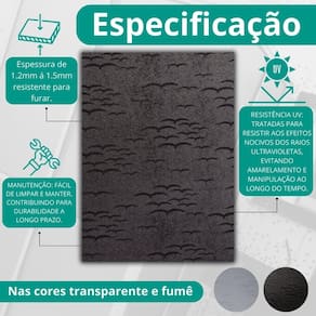 Medidas: 90cm x 98cm Cores Disponíveis: Revoada Fumê Espessura: 1.5mm