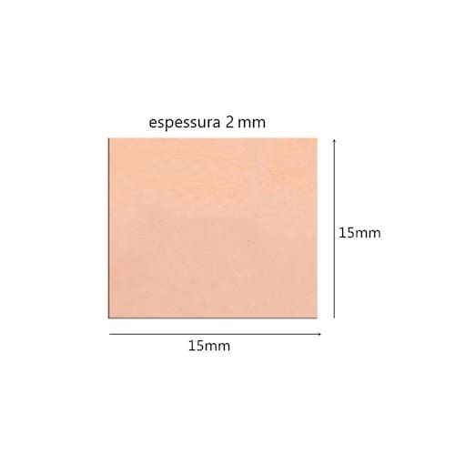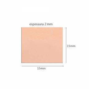 Chapa De Cobre Dissipador De Calor 15mm X 15mm X 2.0mm - UNIDADE ================================================== Modelo: 15mm x 15mm x 2.0mm Unidades por pacote: 1 Material: Cobre É autoadesivo: Não ======================================================= Almofada térmica de cobre 15mm x 15mm x 2.0mm Energia: 0.9 W Aplicação: Processador, Chipset, BGA Tipo: Dissipador de calor Material dissipador de calor: CobreQUANTIDADE DE PEÇAS POR EMBALAGEM - 1 PEÇA Ean: 4053933449756