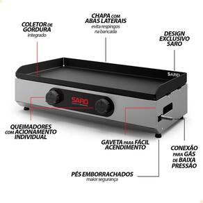 A Chapa Saro CP70 é indicada para uso residencial e profissional, sendo perfeita para cozinhas domésticas, lanchonetes, padarias e pequenos negócios.