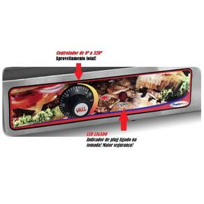 Possui uma estrutura confeccionada em chapa de aço Inox 430 escovado, sua resistência de alta durabilidade, acompanha gaveta aparadora de resíduos, que facilita na hora da higienização, e ajustador de temperatura de 0° a 300°