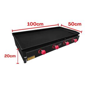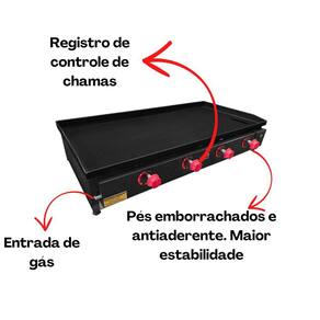 Queimadores: 4 queimadores formato em U, para ter um aquecimento distribuído igualmente em toda a chapa.