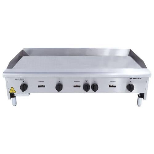 A Chapa Deguste possui corpo em aço inoxidável escovado, seus queimadores são esmaltados com controle individual sendo de fácil acendimento através de chama piloto ao lado de cada queimador.