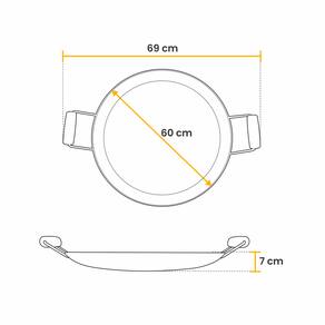 A chapa da renomada marca MK é perfeita para preparar uma variedade de pratos, como bifes suculentos, macarrão na chapa e muito mais. Fabricada em aço de alta qualidade, a peça conta com um acabamento liso que facilita a limpeza e a distribuição uniforme do calor, proporcionando um preparo eficiente dos alimentos. Sua coloração única, que varia entre o tom natural do aço queimado, confere um visual rústico e marcante, ideal para quem busca praticidade e estilo. O formato redondo da chapa oferece ampla área de cozimento, com um diâmetro total de 60 cm. Entre os puxadores, o diâmetro é de 68 cm, garantindo um manuseio seguro e confortável. A altura da chapa de 7 cm, contribui para reter o calor e facilitar o preparo de diversos tipos de alimentos.