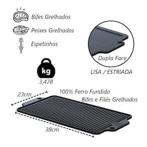 Chapa Dupla Face Slim em Ferro Fundido Lisa Grelhada 38x23cm