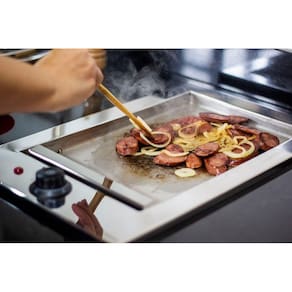 Disponível em duas voltagens diferentes (110V ou 220V), conta com um coletor de gordura removível e é fabricada em aço inox 304, o que aumenta a durabilidade do produto e faz com que a chapa seja resistente à corrosão. Sua temperatura máxima é atingida em até 10 minutos e a instalação é feita por encaixe, sem necessidade de fixação por parafusos, buchas ou colas; basta embutir a chapa na bancada, em nicho previamente preparado. O compartimento coletor de resíduos facilita a limpeza do produto e seu design moderno faz com que a chapa se integre na decoração com harmonia, embelezando sua cozinha, varanda ou área gourmet.