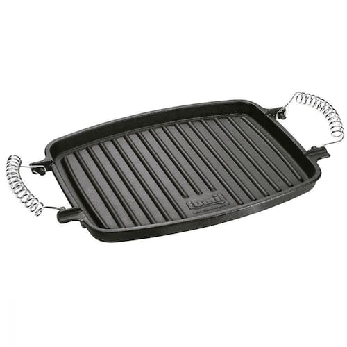 Chapa de ferro fundido, medidas 31 cm de comprimento x 25 cm de largura, essa medida não inclui as alças que medem 3 cm de cada lado. Possui alças de aço em espiral que não esquentam . Marca Panela Mineira. Melhora o grelhado sem acúmulo de líquidos e gorduras. Chapa extremamente resistente, pode ser utilizado diretamente sobre todos os tipos de fogões a gás, a lenha, elétrico, a álcool e em churrasqueiras. Possui canaletas nas bordas para armazenamento de liquidos. Ideal para preparar carnes, legumes, sanduiches, ovos e etc. Muito utilizada por bares e restaurantes para servir porções devido sua resistência, boa apresentação e por manter-se quente por muito tempo. Características do Produto: Material feito de Ferro Comprimento: 31 cm Alça lateral: Espiral Largura: 25 cm Peso: 3,1 kg Código: 768