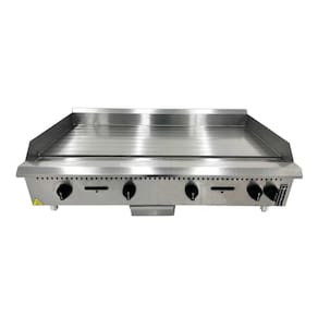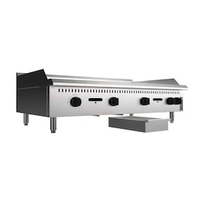 - Painel e laterais em aço inoxidável; - Borda anti-respingo em aço inoxidável 2,0 mm; - Chapa fabricada em aço carbono com espessura de 3/4 (19,05 mm); - Chapa soldada às bordas, garantindo estanqueidade ao conjunto; - Queimador esmaltado à fogo com registro independente, garantindo uniformidade à superfície de trabalho e mais durabilidade; - Visualização e ajuste dos pilotos são feitos através do painel frontal; - Manipuladores em alumínio injetado e pintados em preto, garantindo maior rigidez e durabilidade; - Possui registro frontal independente com a função de impedir e liberar a passagem de gás para o piloto; - Bandeja coletora construída em aço inoxidável de fácil remoção e limpeza; - Pés de 4" (102 mm) ajustáveis, em aço carbono cromado.