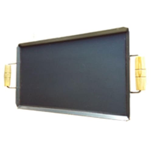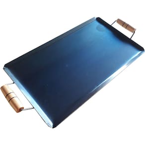 Chapa em aço carbono altamente resistente. Alças com acabamento em madeira. Ideal para fogões industriais de 2 bocas e fogões de cozinha de 4 bocas. Dimensões: 22 cm de comprimento x 42 cm de largura. Espessura de 2 milímetros. Descrição: Agora fazer lanches, bifes na chapa, pães com manteiga, etc ficou muito fácil Fácil de usar e de limpar. Ideal para ranchos, apartamentos, casas, Camping, etc. Atenção: O produto vem de fábrica embebido com óleo natural para conservar em estoque. Facilmente retirado com água e detergente. Para preservação do produto, aconselhamos após o uso, lavar e enxugar bem antes de guardar. Não é Anti Aderente.