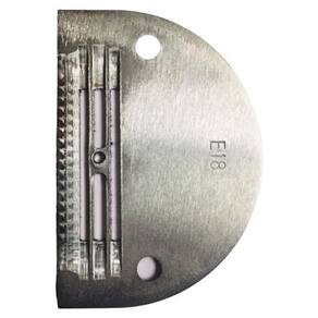 A chapa de agulha modelo E18 é uma peça utilizada em máquinas de costura reta industrial. Ela é um componente importante do mecanismo de alimentação da máquina e tem a função de guiar a agulha durante o processo de costura.