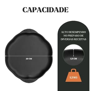 Modelo: Chapa Petisco Redonda 20x2,5cm Material: Ferro fundido Medidas: 20 × 2,5 cm (Diâmetro × Altura) Peso: 1,17 kg