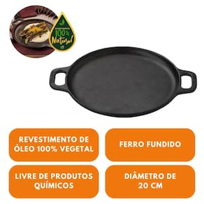 A Chapa Petisco Redonda 20 é um utensílio prático e versátil para o preparo de diferentes receitas na cozinha. Fabricada em ferro fundido, oferece excelente retenção e distribuição de calor, proporcionando um preparo eficiente e uniforme dos alimentos.
