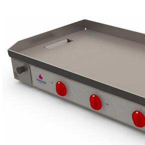 Seus queimadores possuem gaveta móvel e o coletor de gordura com gaveta móvel permite que toda a gordura produzida pela chapa seja retirada com mais facilidade. Além disso essa chapa possui alimentação a gás baixa pressão com consumo de 0,98 kg/h.