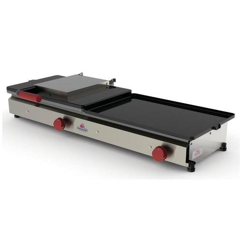 Chapa reforçada para frituras e sanduiches. Produto reforçado e inteiriço com queimadores de gaveta móvel.