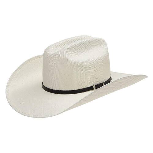 Chapéu Mundial modelo Americano fabricado em Fibra Têxtil na cor Branca, possui aba de 10cm de copa tradicional de 10cm, bandinha de material sintético com fivela e carneira de elástico.