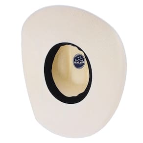 Chapéu copa quadrada Pralana fabricado em fibra têxtil estilo Palha, possui copa de 11cm e aba larga de 12cm, bandinha de fira de nylon e carneira de elástico.