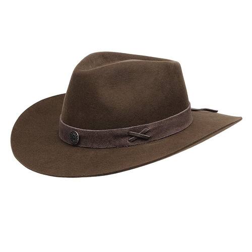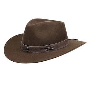 Chapéu Marcatto fabricado em Feltro na cor Marrom, possui aba de 7,5cm e copa social de 11cm, bandinha de material sintético com detalhe em margarida e nó na parte detrás e carneira de elástico.