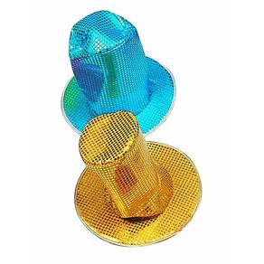 O disco de chapéu assemelha-se a uma tradicional mágico do 70 e é coberto com lantejoulas brilhantes, brilhante.