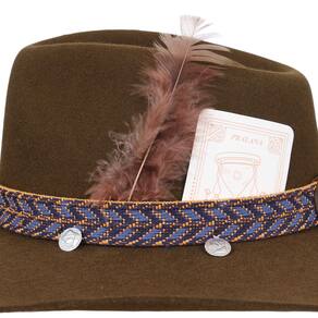 Um Chapéu da marca Pralana é feito de um feltro de alta qualidade, o que o torna durável. Ele apresenta uma aba de 10,5cm e copa de 11cm, característicos dos chapéus. A parte interna possui uma faixa de elástico, que ajuda a manter a cabeça no lugar. O chapéu também é decorado com uma bandinha customizada em material sintético, com detalhes presos, carta da marca e pena de ave, o que adiciona um toque elegante e sofisticado ao design rústico. Com sua combinação de estilo e funcionalidade, este chapéu é a escolha perfeita para cowboys e cowgirls que buscam uma peça clássica e atemporal para complementar seu visual country.