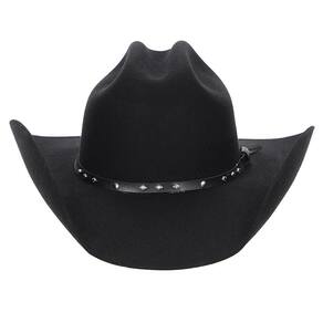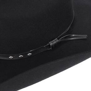 Chapéu Pralana modelo Arizona III, fabricado em Feltro 100% Lã cor Preto, repelente à água, aba de 10cm e copa de 11cm, banda em material sintético com detalhes em rebites e carneira de recouro.