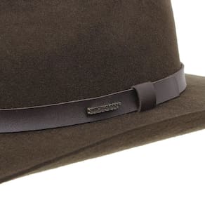 Chapéu Stetson fabricado em Feltro na cor Tabaco, possui aba de 9cm e copa social de 10cm, bandinha de material sintético com boton e carneira de elástico.