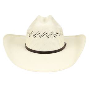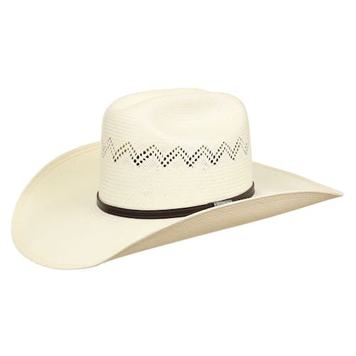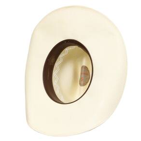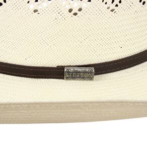 Chapéu Country modelo 20X da marca Stetson, fabricado em palha estilo shantung com aba de 10,5cm e copa de 12cm, carneira de recouro que proporciona melhor firmeza e ajuste, a banda que envolve a copa é fabricada em couro costurado na cor marrom dando um toque discreto ao modelo.