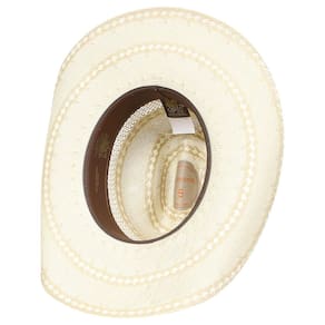 Chapéu Country modelo 20X da marca Stetson, fabricado em palha estilo shantung com aba de 11cm e copa de 12,5cm, carneira de material sintético que proporciona melhor firmeza e ajuste, a banda que envolve a copa é fabricada em couro costurado na cor marrom dando um toque discreto ao modelo.