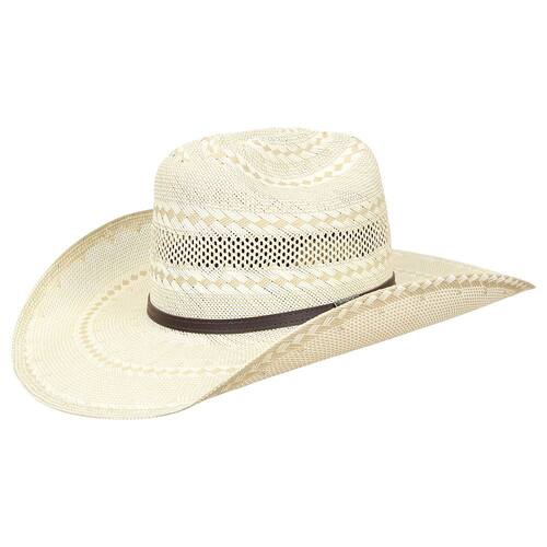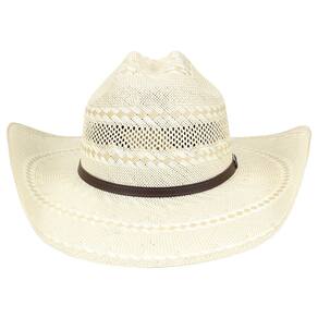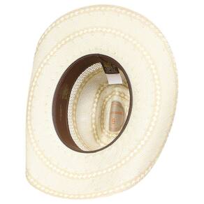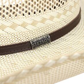 Chapéu Country modelo 20X da marca Stetson, fabricado em palha estilo shantung com aba de 11cm e copa de 12,5cm, carneira de material sintético que proporciona melhor firmeza e ajuste, a banda que envolve a copa é fabricada em couro costurado na cor marrom dando um toque discreto ao modelo.