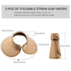 - Conteúdo da embalagem: um total de 3 peças de chapéu de palha dobrável na embalagem, 3 cores diferentes para você, incluindo preto, cáqui e bege, você pode escolher uma diferente para combinar com suas roupas diárias; o chapéu pode enrugar quando desdobrado, as rugas serão reduzidas após algumas horas de desdobramento
