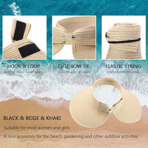 - Design elegante: esta viseira solar de palha tem lindo design de gravata borboleta na parte traseira, que é preso firmemente a uma corda elástica e pode ajudar a dar um toque lindo e atraente às suas roupas; O chapéu foi projetado com fita adesiva, para que você possa ajustar seu tamanho facilmente para caber melhor em sua cabeça, prático de usar