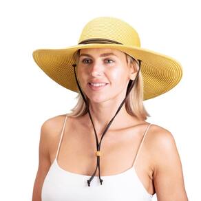 Sloggers Chapéu de sol feminino de aba larga trançado com cordão de vento - Marrom claro - Proteção solar máxima FPS 50+, estilo 442LB01