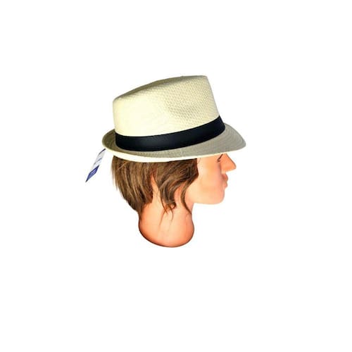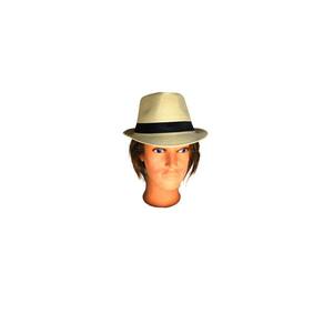 Chapéu Estilo Panamá Carnaval Bege Com Fita Preta Fem/Masc