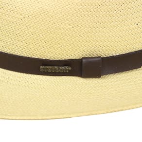 Chapéu Casual da marca Stetson, fabricado em palha com aba de 6,5cm e copa de 11,5cm, carneira de elastico que proporciona melhor conforto e ajuste, a banda que envolve a copa é fabricada em fita de debrum marrom dando um toque discreto ao modelo.