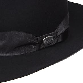 Chapéu Pralana modelo Alpaca 10X fabricado em feltro 100% Lã na Preto, possui copa de social forrada de 10cm e aba de 7cm, bandinha em fita de nylon com boton de metal e carneira em recouro.