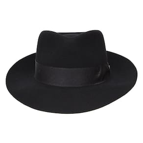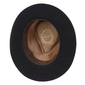 Chapéu Pralana modelo Alpaca 10X fabricado em feltro 100% Lã na Preto, possui copa de social forrada de 10cm e aba de 7cm, bandinha em fita de nylon com boton de metal e carneira em recouro.
