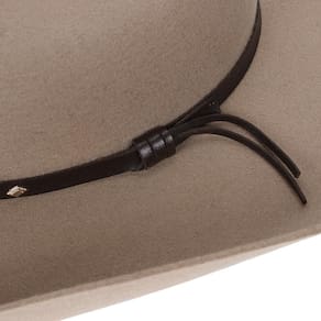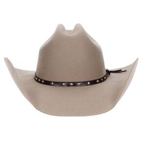 Chapéu Pralana modelo Arizona III, fabricado em Feltro 100% Lã cor Bege, repelente a água, aba de 10cm e copa de 11cm, banda em couro sintético com detalhes em rebites e carneira de recouro.