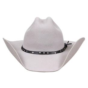 O Chapéu modelo Arizona III da Pralana é feito de um feltro de alta qualidade, o que o torna durável e resistente às intempéries. Com uma cor Gelo, ele apresenta uma aba larga de 9,5cm e topo quadrado de 11cm, característicos dos chapéus. A parte interna possui uma faixa de couro, que ajuda a manter a cabeça no lugar. O chapéu também é decorado com uma bandinha customizada em material sintetico marrom, com detalhes metálicos, o que adiciona um toque elegante e sofisticado ao design rústico. Com sua combinação de estilo e funcionalidade, este chapéu é a escolha perfeita para cowboys e cowgirls que buscam uma peça clássica e atemporal para complementar seu visual country.
