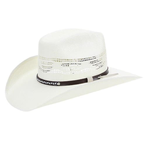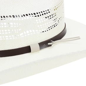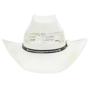 Chapéu Pralana Bangora 8 Segundos fabricado em fibra de celulose na cor Branco, possui copa quadrada de 11cm e aba de 9,5cm, bandinha de material sintético e carneira de elástico.