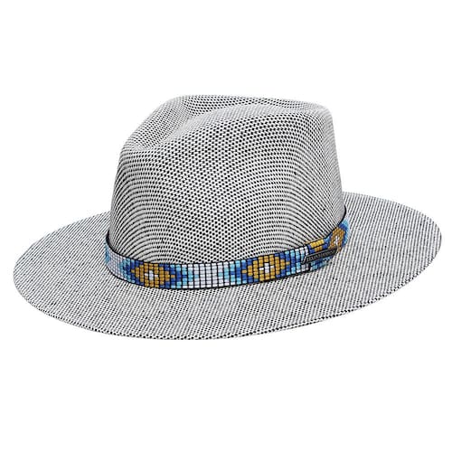 Chapéu Texas Diamond modelo Social bicolor fabricado em Fibra Têxtil, possui aba de 7cm de copa social de 10cm, bandinha de nylon com boton de metal e carneira de elástico.