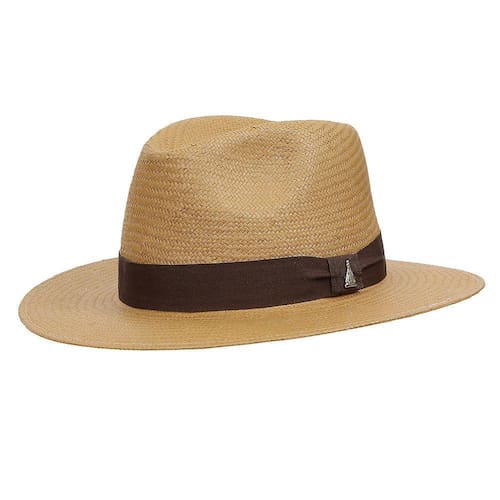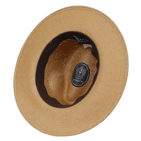 Chapéu Marcatto modelo Social fabricado em Fibra de Celulose na cor Palha, possui copa de 10cm e aba de 7cm, bandinha de fita de nylon com boton de Nossa Senhora Aparecida e carneira de elástico.