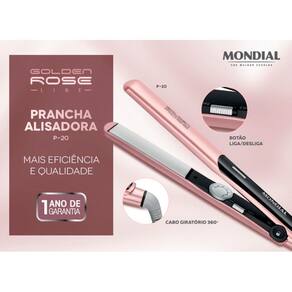 Detalhes do produto: Mondial: Chapinha | Prancha Mondial Golden Rose P20 220°C Cerâmica e Tourmaline - Rosa