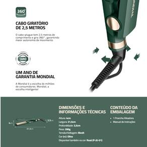 Cerâmica: distribui o calor de forma uniforme, proporcionando um alisamento rápido e sem danificar os fios.