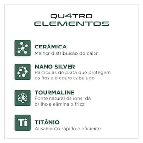 - Revestimento Especial com Quatro Elementos: Infusão de Cerâmica, Titânio, Tourmaline e Nano Silver