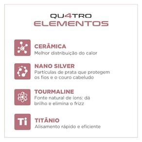 Ela possui 4 revestimentos especiais: Ceramica, Titanio, Tourmaline e Nano Silver.