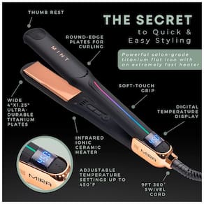 Alisador de Cabelo MINT com Placas de Titânio: O alisador MINT é equipado com um aquecedor profissional de última geração que atinge a temperatura máxima em apenas 15 segundos e mantém o calor durante todo o processo de modelagem. Isso elimina o tempo de espera para recuperação de calor, proporcionando uma experiência de uso eficiente e prática.