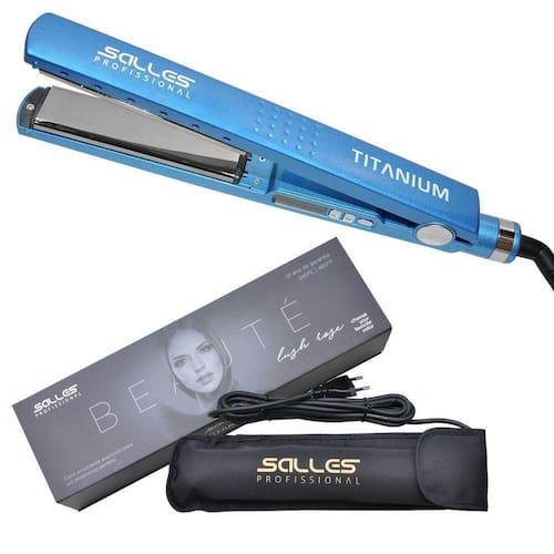 Chapinha Prancha Titanium 460ºf 240ºc Salles Profissional Azul Chapinha prancha titanium salles profissional 460ºf 240cº o aquecimento da chapinha titanium salles é ultra-rápido, aproximadamente 30 segundos e mantém-se aquecida durante toda aplicação. As chapas de titanium tem um acabamento brilhante e permitem o deslizamento perfeito entre as placas e os fios dos seus cabelos. > tamanho médio 1 . > 240ºc graus célsius 460ºf graus fahrenheit - 10ºc mais quente que as outras. > sistema de alto regulagem nas lâminas. > condicionamento iônico para brilho anti frizz. > 5 leds para controle eletrônico de temperatura. > revestimento exterior suporta o calor excessivo sem transferir para o usuário. > excepcionalmente resistente á corrosão química, mais resistente que o aço. > oferece excepcional alisamento com resultados em menor tempo de aplicação. > alisa o cabelo até 60% mais rápido. > design ergonômico e cabo de alimentação giratório 360º. > tecnologia bivolt automático. > homologado pelo inmetro. > manual em português. > de 01 ano. Ean: 7898700160352